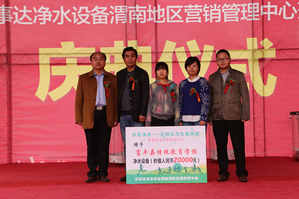在廣泛承接校園工程的同時,榮事達堅持公益助學,獲得了社會廣泛好評。早在2011年,榮事達水工業公司便發起了“愛心傳遞,健康助學”活動,截至目前已為100多所偏遠山區學校及希望小學無償提供直飲水系統。2014年,榮事達傾情贊助了中國夢·徽皖情“綠葉增春”愛心書畫展,現場義拍100多幅書畫作品,所募資金都捐給了安徽省內貧困地區的學校。2015年,樂享凈水助殘行動啟動以來,榮事達志愿服務團隊已經遍及安徽、江蘇、陜西、河南、江西等多個地區,向各大康復學校和助殘機構捐贈、安裝凈水設備1300多套,直飲水受益群體已逾30000人,社會反響空前。