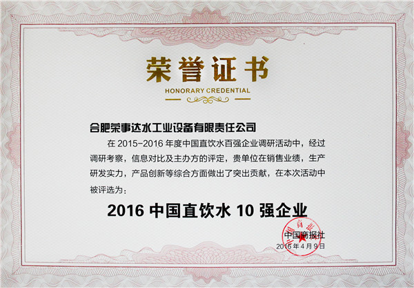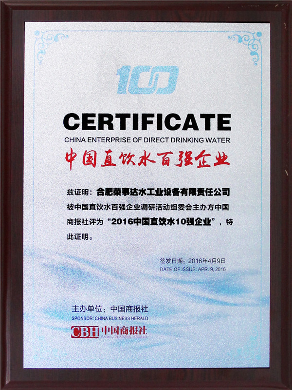 “中國直飲水百強企業(yè)”的評定是對凈水企業(yè)的銷售業(yè)績、生產(chǎn)能力、產(chǎn)品創(chuàng)新以及消費者品牌認知、消費者服務(wù)滿意度5方面的高度認可,樹立凈水行業(yè)發(fā)展標桿、促進行業(yè)健康穩(wěn)步發(fā)展,同時,將對消費者選購凈水器產(chǎn)生重大參考意義。