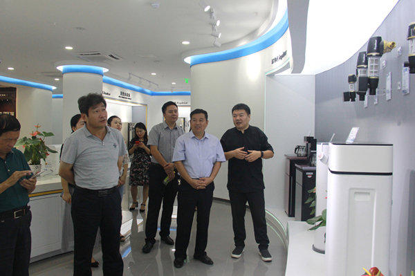調研工作組在榮事達水工業集團董事長雷鳴、工程公司總經理劉東、安徽省凈水行業協會秘書長柳敏陪同下,先行參觀了榮事達水工業集團,實地考察榮事達智慧水世界展廳、六大科研實驗室、物聯網產品體驗中心、智能化生產車間等,對榮事達全系列凈水產品及諸多智能新技術表現出極大興趣,共同感受了榮事達校園直飲水、智能家居凈水、城市公共飲水、社區智慧飲水、農村污水處理、工業污水處理、生活污水處理、醫療污水處理、海水淡化、景觀水處理等十大水處理系統多元化發展藍圖。