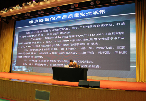 • 12月12日,合肥榮事達、浙江沁園、北京碧水源以及上海浩澤等18家凈水器生產企業代表齊聚國家質檢總局,共同向社會做出質量安全承諾,公開承諾:嚴格遵守國家各項有關法律法規和相關規定,接受社會監督,產品設計、制造標準達到或者高于有關國家和行業標準要求,并明示對鉛、砷、四氯化碳、三氯甲烷等有害物質的凈化效率。本次活動是質檢總局推動企業標準自我聲明的一次重要活動。