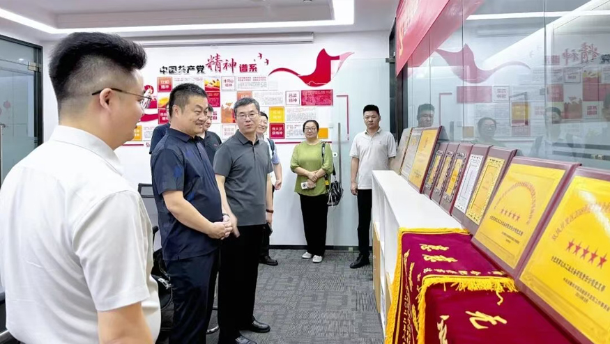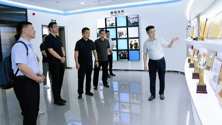 在智慧水世界展廳,總經(jīng)理王悅生向領(lǐng)導一行詳細介紹集團的發(fā)展歷程、公益貢獻及黨建引領(lǐng)下的企業(yè)文化等。