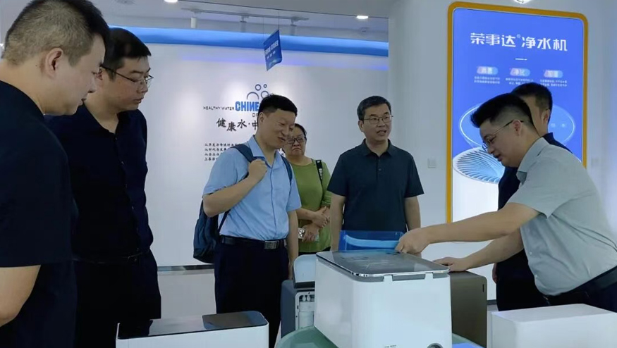 領(lǐng)導一行參觀了解集團的全屋智慧凈水項目、社區(qū)智慧飲水項目以及校園直飲水項目等。
