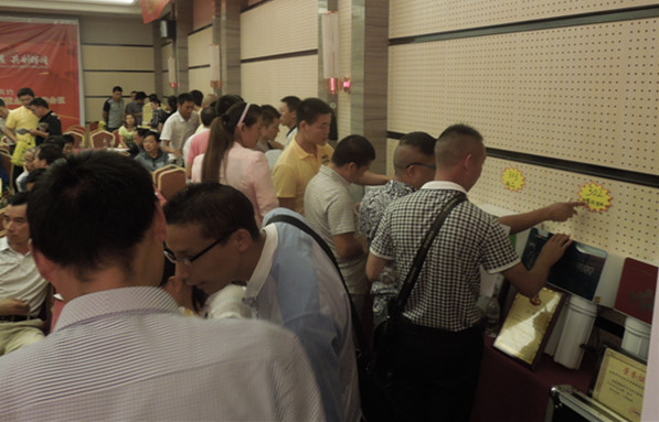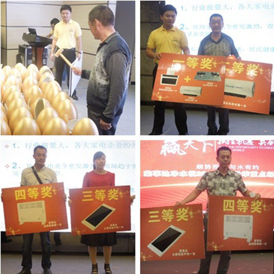 分銷會上,現場訂貨政策解讀贏得廣大客戶一片叫好,訂貨客戶砸金蛋贏燃具套餐、電熱水器、智能手機大獎更是將會議氣氛推向高潮。現場,新客戶合作意向強烈,洽談區忙得熱火朝天;老客戶現場訂貨訂單接連不斷,抽得大獎更是喜笑顏開。此次深度分銷會議,榮事達新增30多位凈水機經銷商,壯大了終端渠道營銷實力,更是給全國代理商異地溝通、學習提供了有益示范。