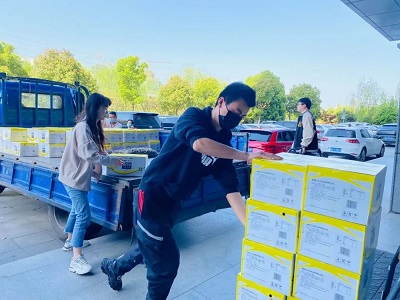 4月8日榮事達(dá)水工業(yè)集團(tuán)工作人員以最快的速度進(jìn)行物資的裝載,滿(mǎn)載著抗疫物資,發(fā)往37℃的愛(ài)活動(dòng)統(tǒng)籌處。