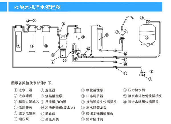 RO凈水機凈水流程: